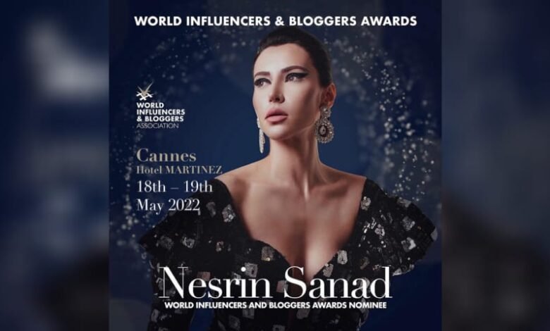 نسرين سند تعلن ترشيحها لجوائز المؤثرين و المدونين العالميين لعام 2022